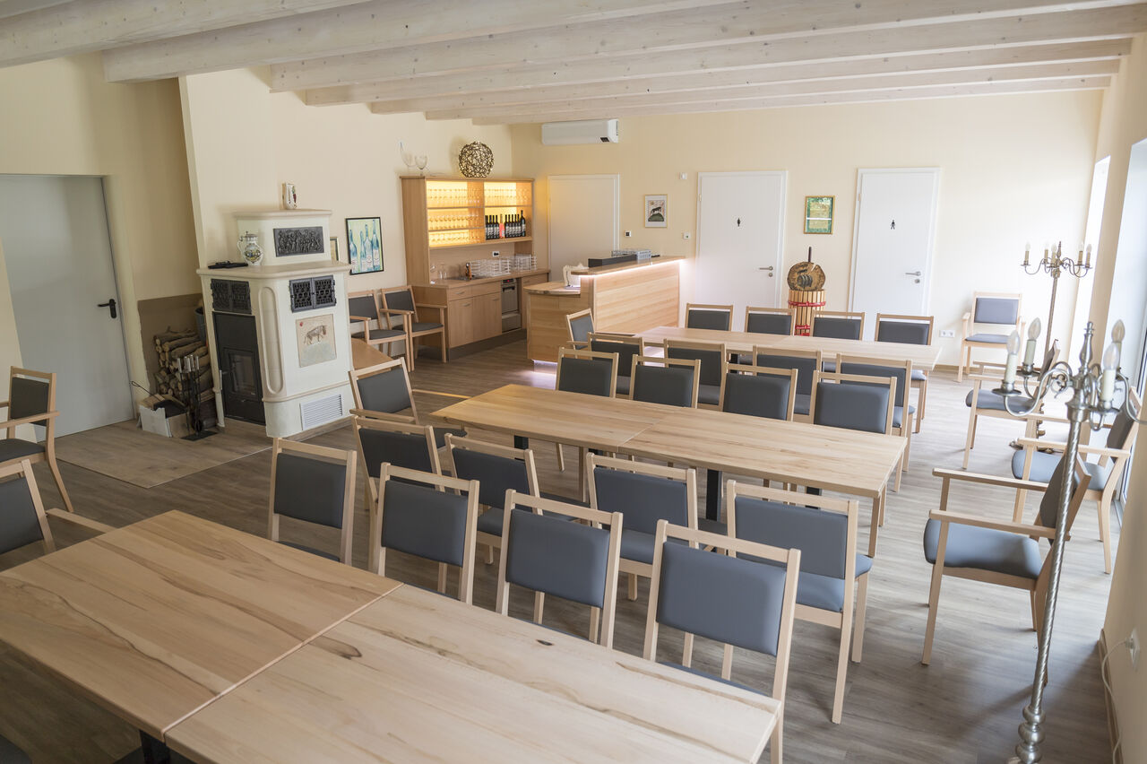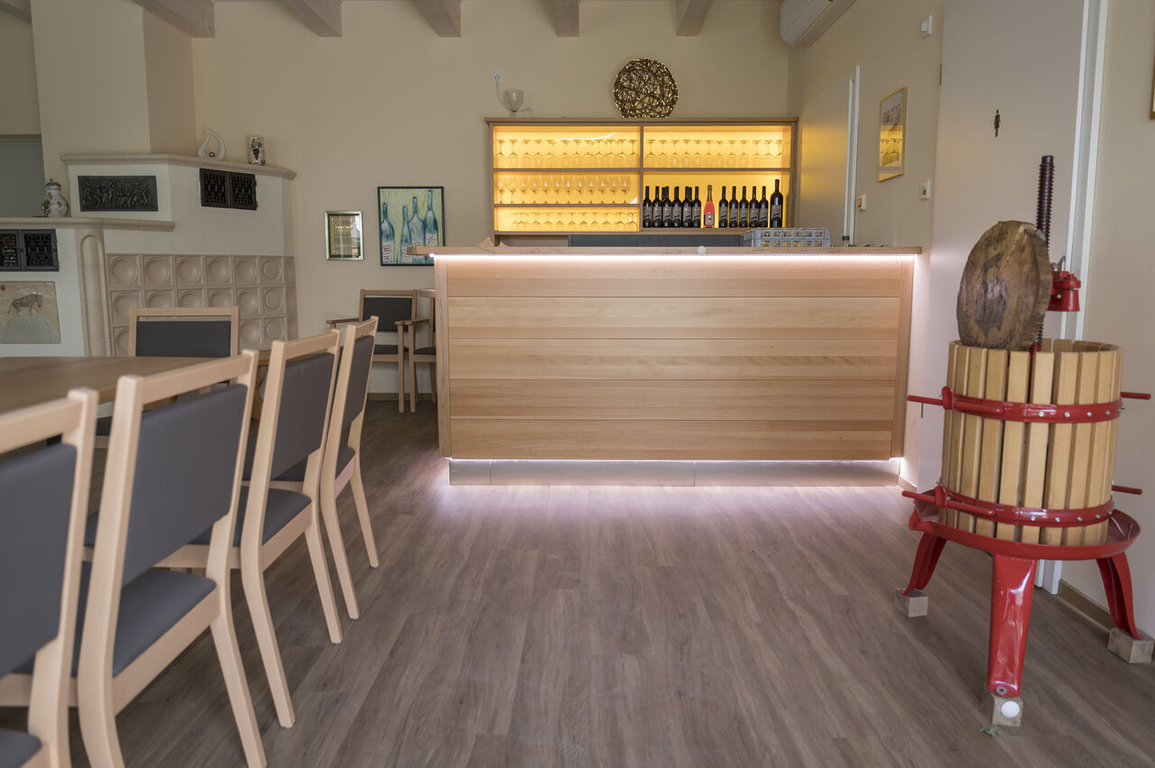 Für unsere Gäste haben wir einen stimmungsvollen, komfortablen und gemütlichen Raum, unsere Vinothek, geschaffen, der zum Verweilen und Probieren einlädt. Auf ca. 100 qm bieten wir Platz für etwa 60 Personen. Auf der Außenterrasse mit großen Sonnenschirmen bieten wir weitere 60 Plätze an. Eine überdachte Erweiterung ist möglich.